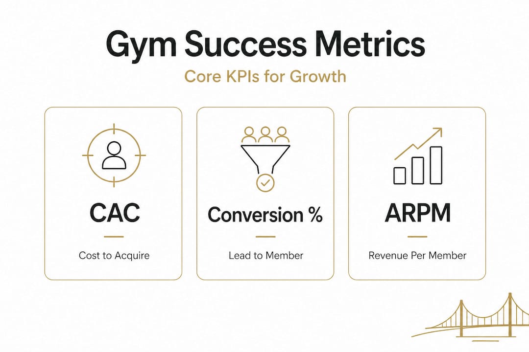 Knowing that data matters is one thing. Knowing which data to track is where gym owners often stall. There are dozens of numbers floating around any marketing platform or membership software, and chasing all of them simultaneously leads to paralysis. Instead, focus on three core KPIs (key performance indicators) that directly connect your marketing spend to membership revenue.